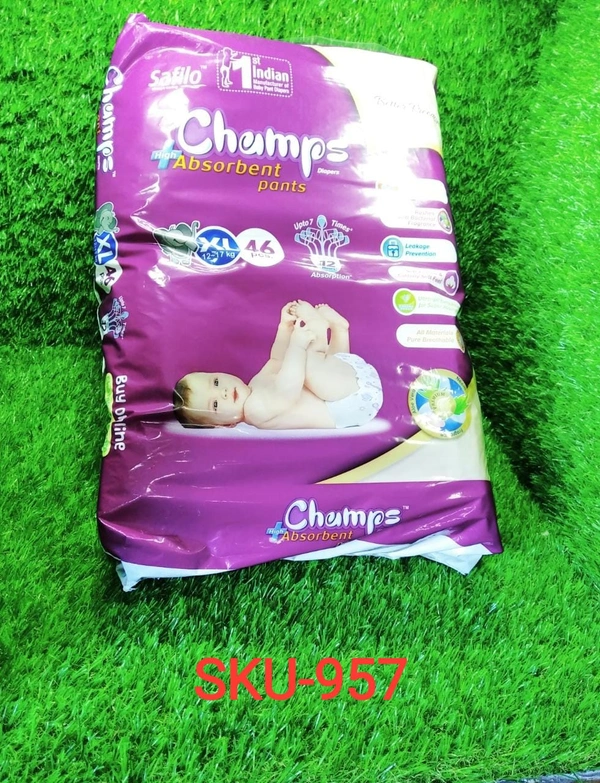 0957 Premium Champs High Absorbent Pant Style Diaper Extra Large(XL) Size, 46 Pieces (957_XLarge_46)