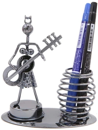1640 Girl Musician Playing Pen Stand Showpiece