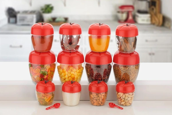 2274 Air Tight Apple Shape Storage Container - 500 ml, 800 ml and 1500 ml (4 Pcs Each Size, 12 Pcs)