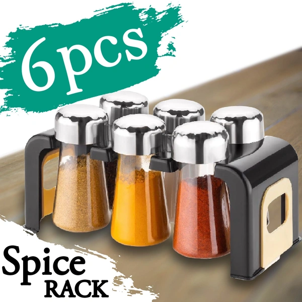 2458 Spice Jar Kitchen Storage Round Jars Airtight Steel Cap (Set Of 6)