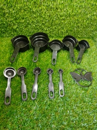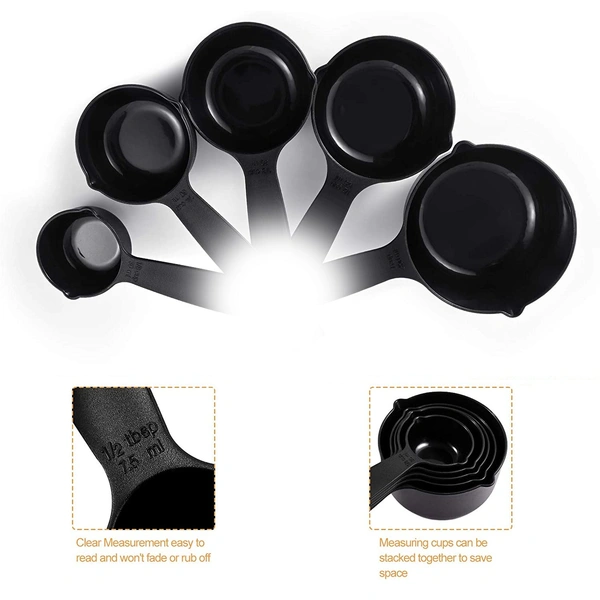 2646 Plastic Measuring Cups and Spoons (11 Pcs, Black) With butterfly shape Holder